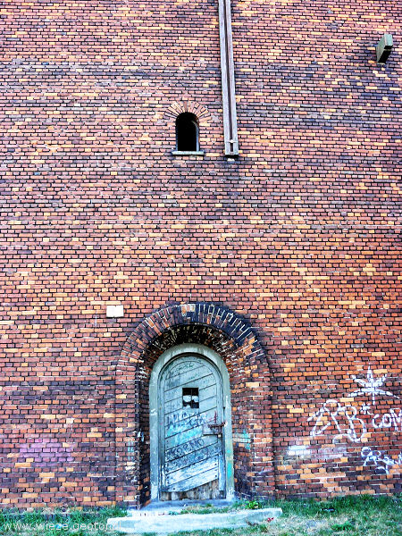 wieża ceglana, stylizacją przypomina budowlę starszą niż jest w rzeczywistości