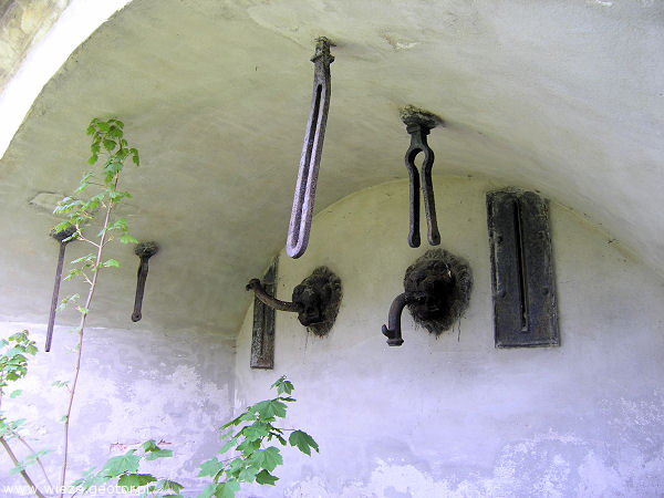 | zdroje z umocowanymi w stropie uchwytami do otwierania zaworów wodnych |