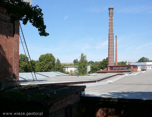 | fragment wieży i dachy zakładu, widok w kierunku ul. Nadražni |