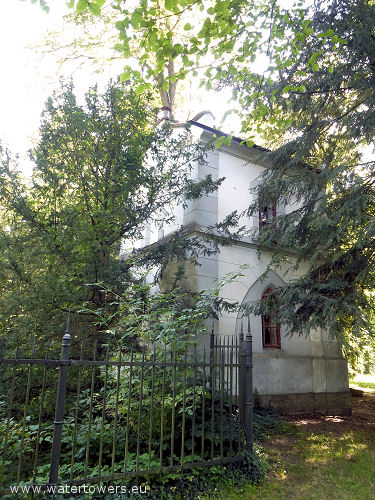 neogotycką, I-piętrową wieżę ciśnień. Zbiornik wodny został zbudowany na