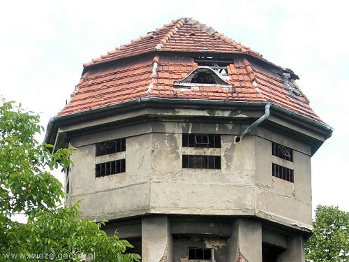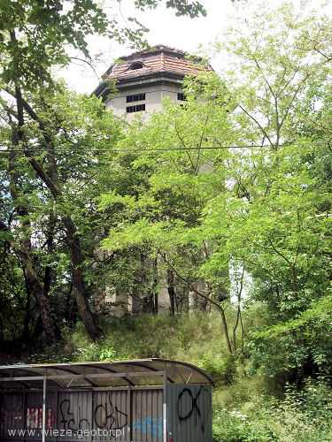 Wieża ciśnień znajduje się przy przy dworcu