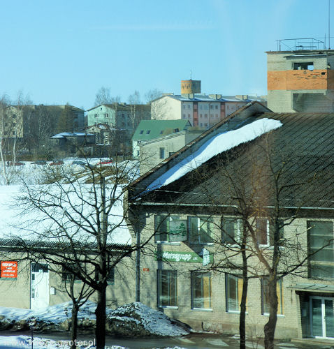 Wodociągowa wieża ciśnień Parnawa – miasto założone prze kawalerów mieczowych w roku 1241. Wieża jest konstrukcją na pewno XX-wieczną, widać ją ponad dachami miasta. Zdjęcia: Edyta Kalińska (marzec 2011 r.)