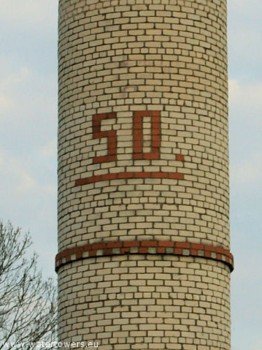 Wieża jednozbiornikowa, wybudowana na planie koła, z białej cegły