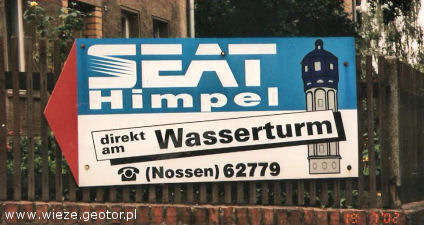 | tablica informacyjna sprzedawcy samochodów z wieżą ciśnień |