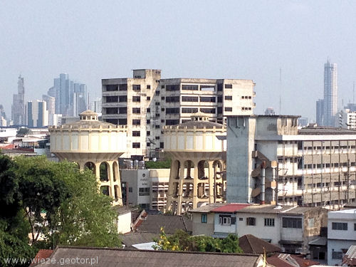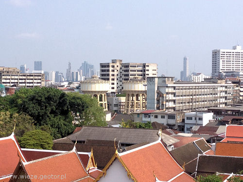 | Bangkok; dwie wieże wodne - widok ze świątyni Golden Mount |