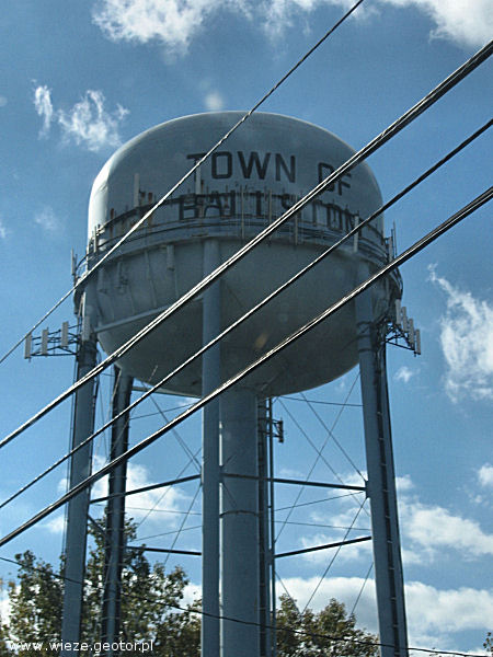 zbiornik na wodę wielkość zbiornika oddaje drabinka prowadząca na jego wierzch |