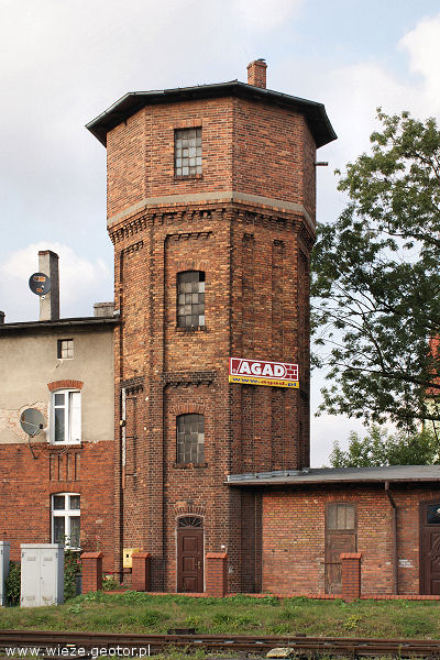 wieża przylega do stojącego obok budynku mieszkalnego.