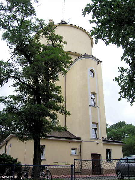 Wieża przedwojenna, o żelbetowym zbiorniku mogącym pomieścić