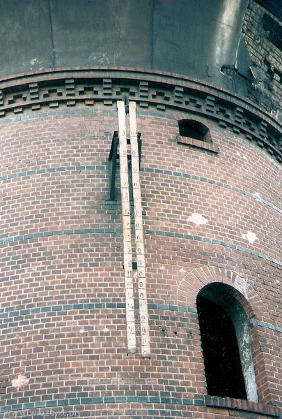 z zielonej cegły glazurowanej. Podobna wieża stoi w Wolsztynie. Data