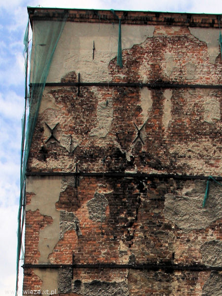 Wieża czworoboczna, kamienno-ceglana, o sześciu