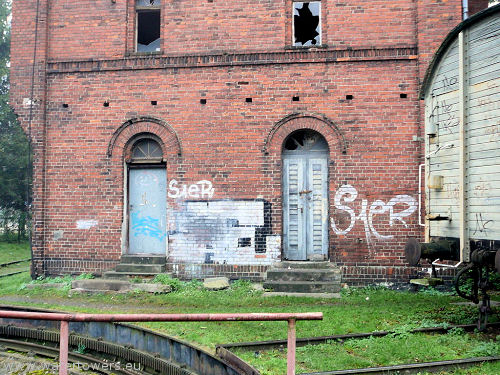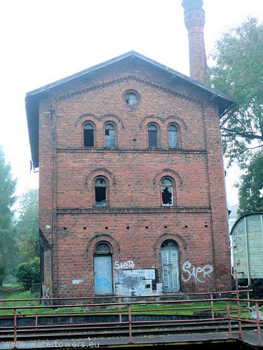 budynek dworca, w sąsiedztwie obrotnicy i lokomotywowni.