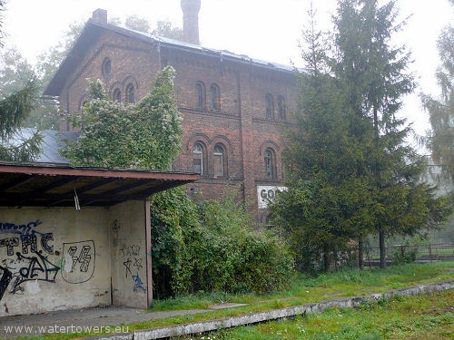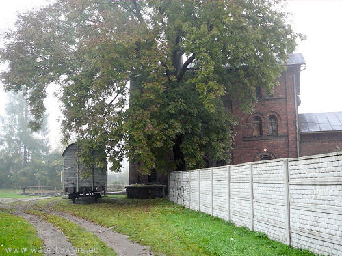 Wieża stoi przy bocznych torach, które obsługiwały wieżę ciśnień i
