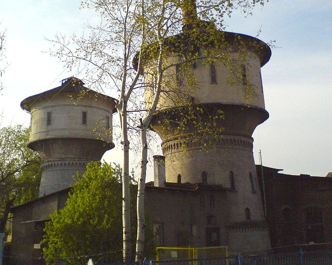 Dwie wieże wodne, podobne - żeby nie powiedzieć - bliźniacze. Trudno mi rozstrzygnąć, która z nich mogła powstać jako pierwsza.
