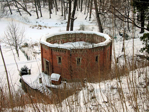 staw ogrodowy, budynek pompowni wody