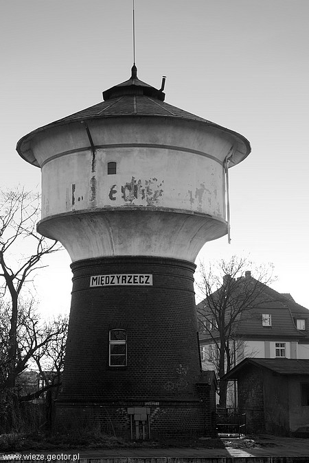 Kolejowa wieża ciśnień Wieża jednozbiornikowa, najczęściej w tego typu wieżach montowano zbiorniki na wodę typu Intze. Zdjęcia: Robert "Złociu" Złotek fot. Robert "Złociu" Złotek wieża ciśnień