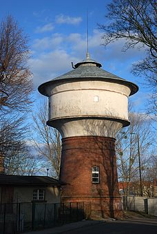 Wieża jednozbiornikowa, najczęściej w tego typu wieżach montowano zbiorniki na wodę typu Intze.