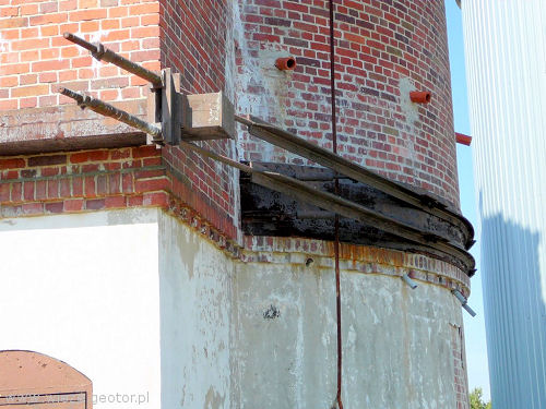Uwagę zwraca stalowa konstrukcja ściągów, spinających przybudówkę z