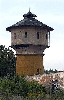 | wieża ciśnień przed i po zburzeniu lokomotywowni |