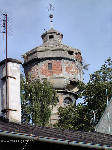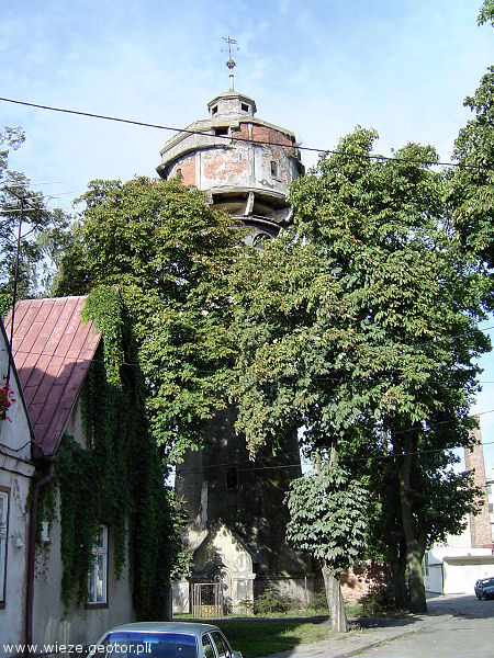w roku 2004 u podstawy wieży widać zwieńczone dwuspadowym daszkiem wejście oddzielone furtką od ulicy |