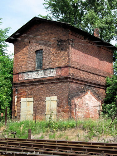 wieża ceglana, dwukondygnacyjna, wybudowana na planie