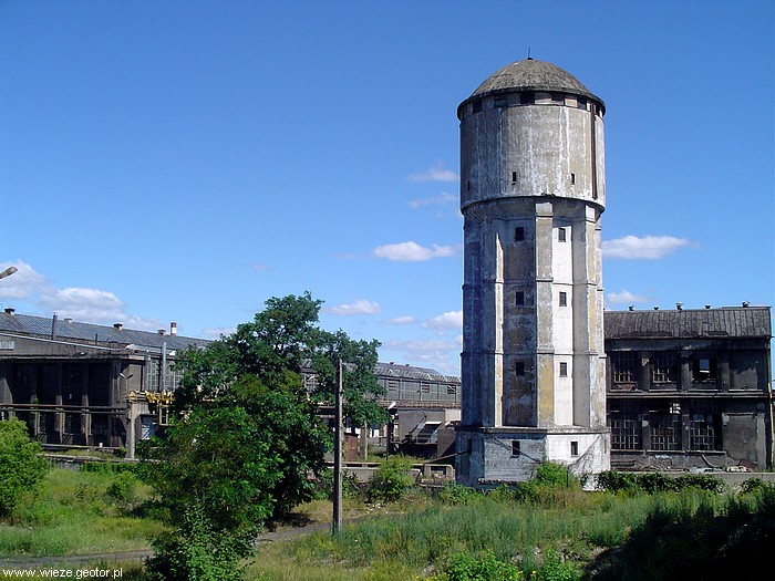 | gowica wieży - konstrukcja żelbetowa, widoczna listwa wodowskazu |
