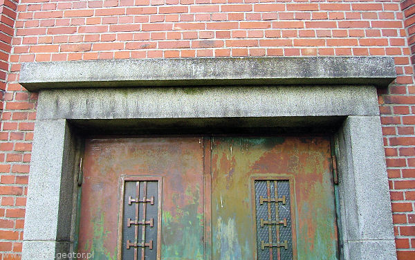 Budowla ceglana, wybudowana na planie sześciokąta. Nad drzwiami data