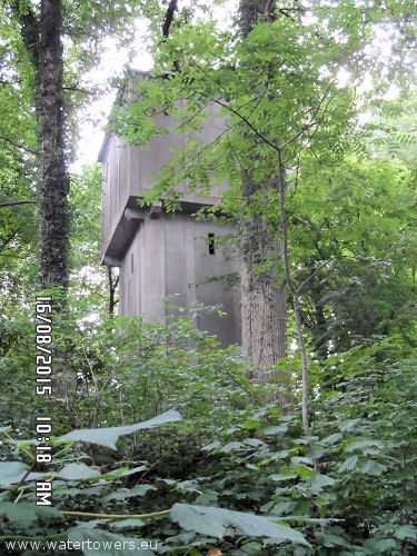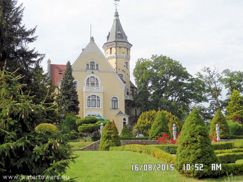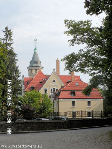 r. zbudowano wieżę ciśnień na pobliskim wzgórzu. Wieża jest murowana,