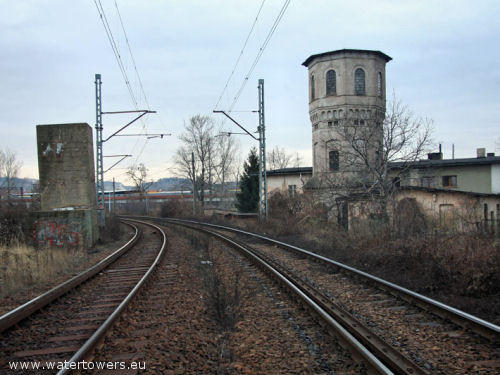 wieża - widok z międzytorza betonowy blok po lewej stroni torów to pochodząca z czasów II wojny światowej element blokady torów |