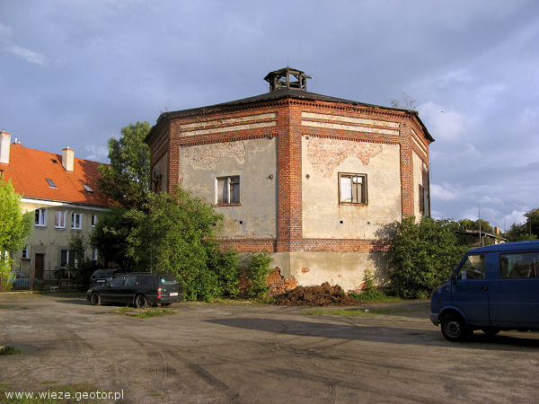 latarnia okrągłe elementy, na których zaczepione są stalowe ściągi spinające konstrukcję budynku |