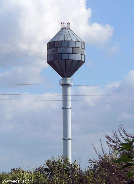Współczesna, metalowa wieża ciśnień - znajduje się przy ul. Rolnej. Zdjęcie - z 15 września 2007 r.