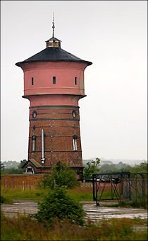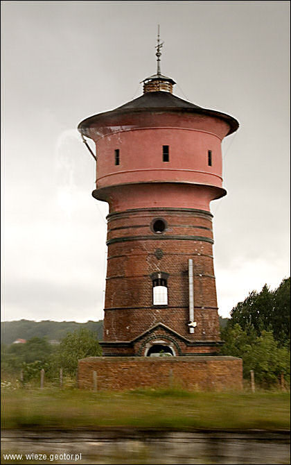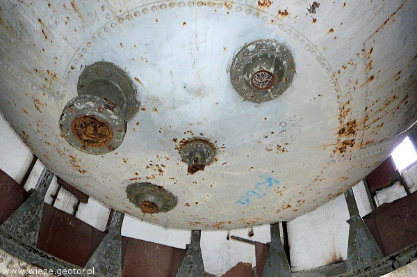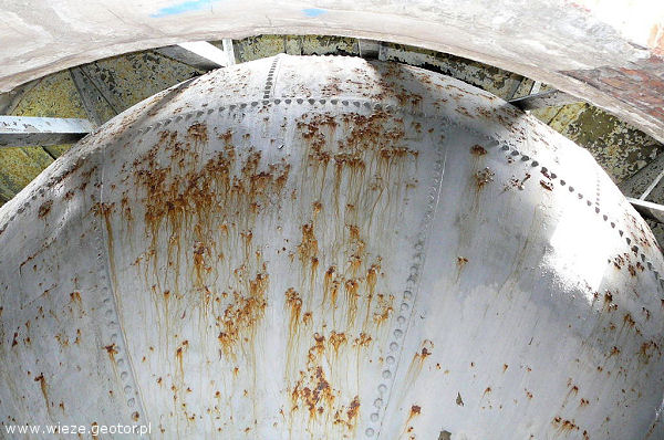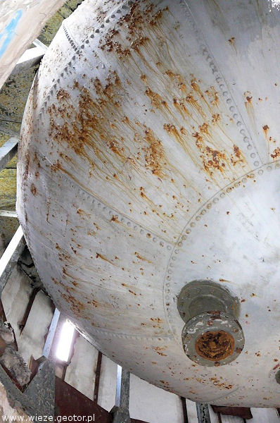 | zbiornik i jego elementy zamocowania na krawędzi wieży |