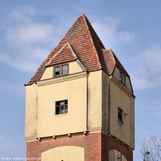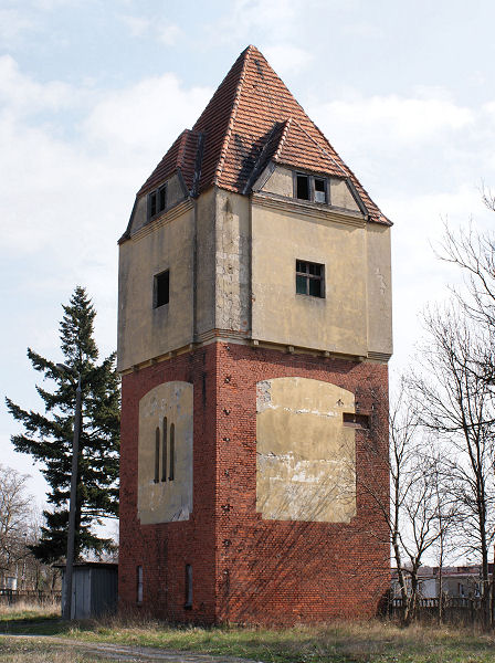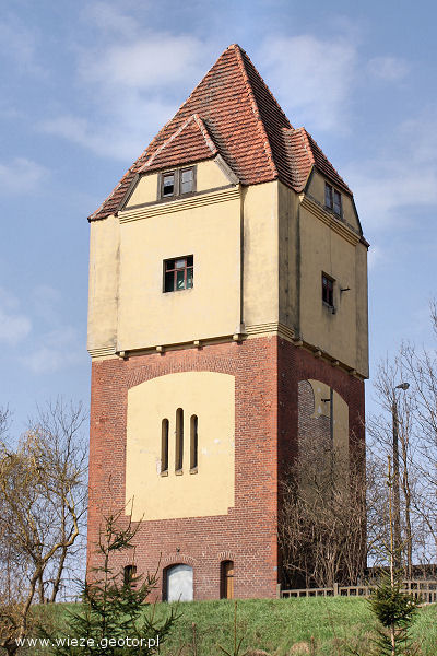 Na dworcu kolejowym można zobaczyć wieżę ciśnień wybudowaną na