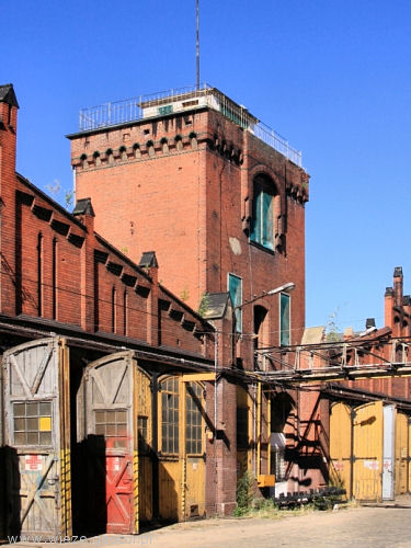 Wieża znajduje się na terenie zajezdni tramwajowej