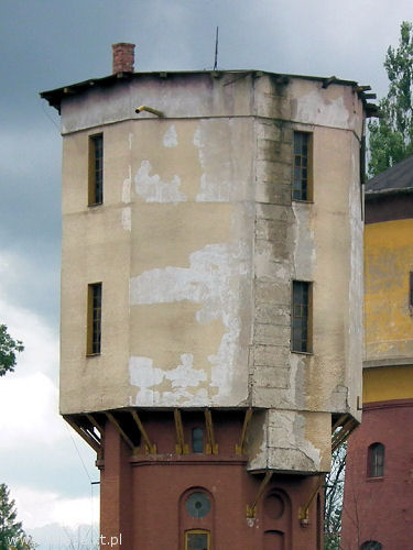 Jedna z dwóch wież wodnych istniejących obok trzystanowiskowej dawnej