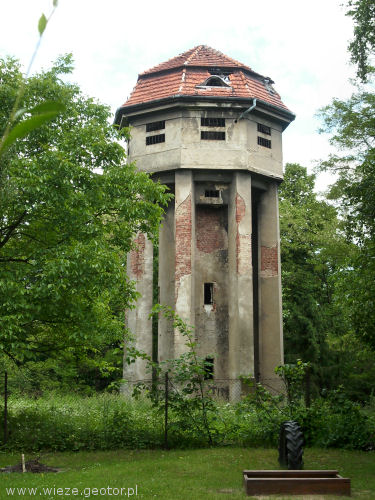 Wieża ciśnień znajduje się przy przy dworcu