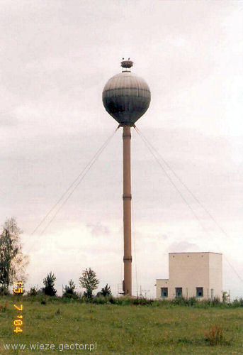 wiejska wieża ciśnień z gniazdem bocianim |