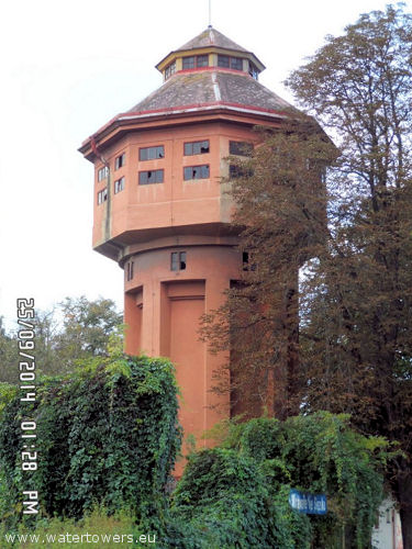 Kolejowa wieża ciśnień stoi przy ul. Poštovni, przy dworcu kolejowym.
