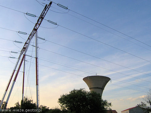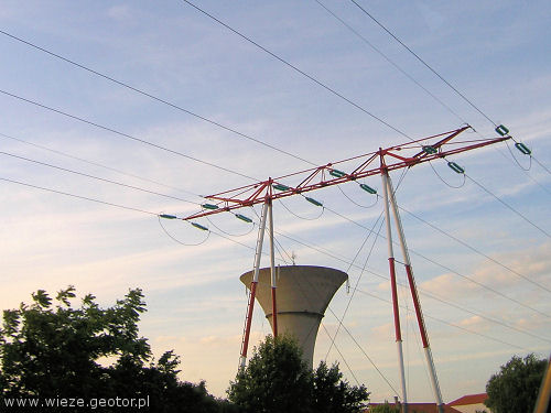 | malowania słupów energetycznych w biało-czerwone kolory wynika z bliskiej odległości do lotniska w La Rochelle |