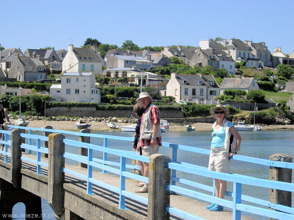 Le Conquet w słońcu i my na małym moście nad La Ria |