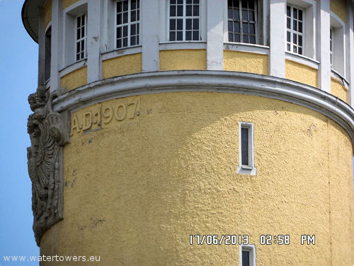 Miejska wieża ciśnień stoi na lewym brzegu rzeki, przy Wilhelmsallee. W
