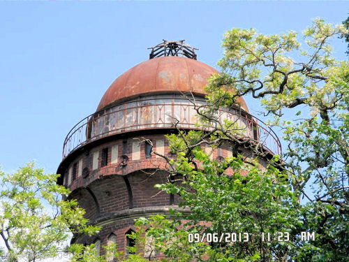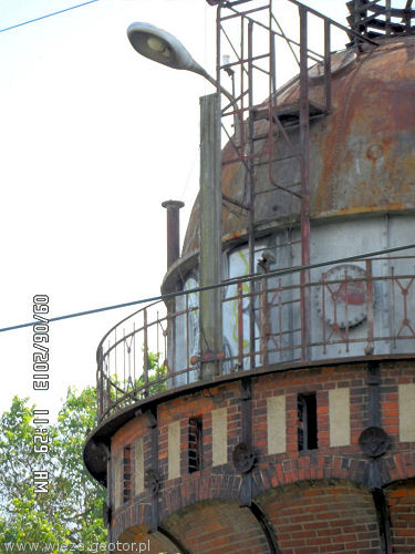 | górna część wieży i galeria wokół kulistego zbiornika na wodę |